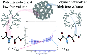 The mechanical properties of an amorphous copolymer are directly related to the dynamic processes occurring at the molecular level. Poly lactic-co-glycolic acid (PLGA) is a biodegradable copolymer, and in this work we investigate the dynamics of PLGA and its glass transition behaviour by performing variable temperature terahertz time-domain spectroscopy (THz-TDS) experiments. We correlate PLGA dynamics, as measured at terahertz frequencies, their temperature dependence, molecular weight (MW), lactide toglycolide ratio, and free volume. The THz-TDS data can be used to detect two distinct transition processes, Tβand Tg,α. To complement our analysis, we use dynamic mechanical analysis (DMA) to probe the β- and α-relaxation processes in PLGA, and compare the results obtained from the DMA experiments with those obtained using THz-TDS. The values of Tg,α, as determined from the THz-TDS experiments, are in good agreement with Tg,DSC, determined by calorimetric measurements, and with Tg,DMA, determined by the DMA measurements. We attribute Tβ to the change in dipole moments associated with the β-relaxation process, originating from the local rotation of C–O macromolecular chain segments, and Tg,α to the change in dipole moments due to large segmental motion of the copolymer backbone associated with the α-relaxation process. By showing experimental temperature-dependent results from THz-TDS and DMA for PLGA, we demonstrate that the behaviour of PLGA is in line with the potential energy surface interpretation by Goldstein as well as the free volume theory of Fox and Flory, and that both concepts together can be used to understand amorphous polymers.